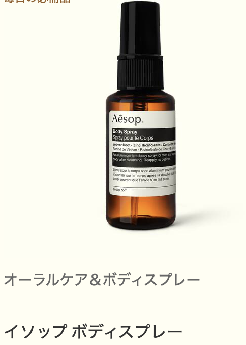 ② イソップ ボディースプレー 50ml 4,620円(税込)